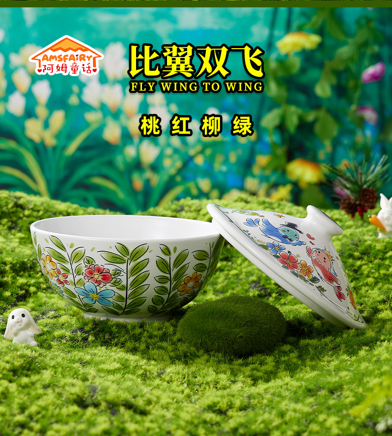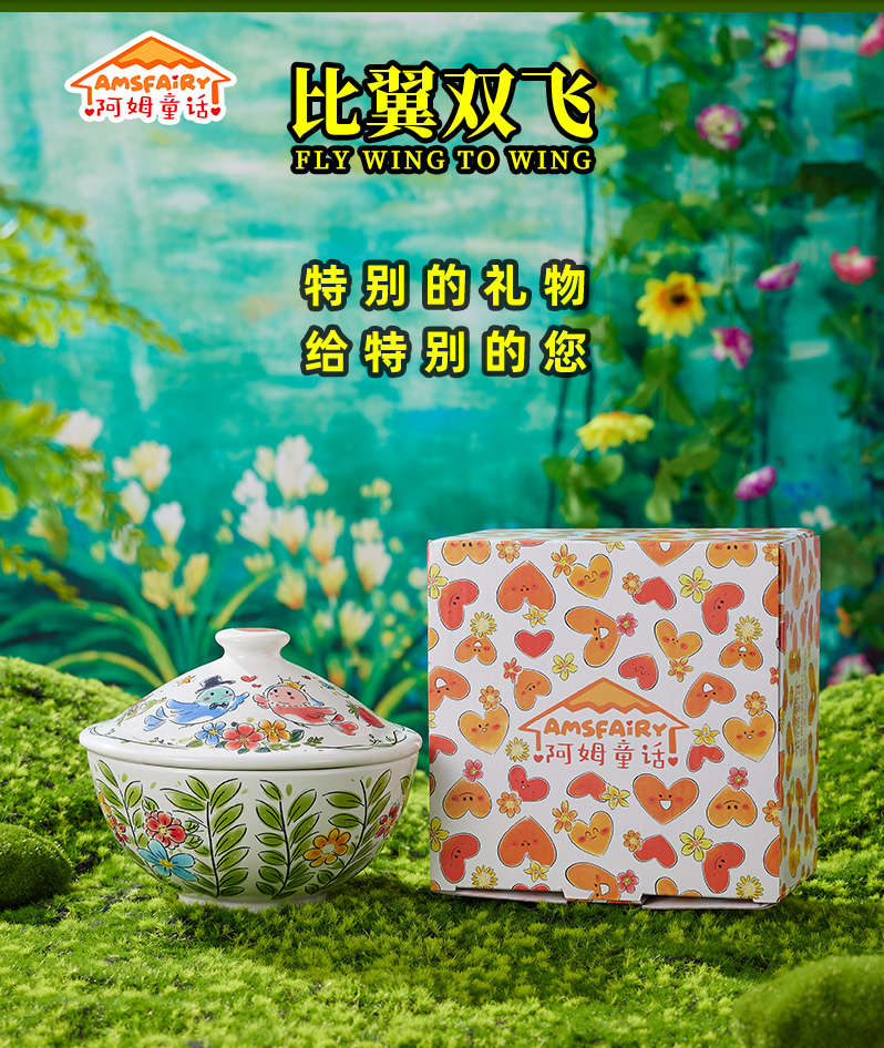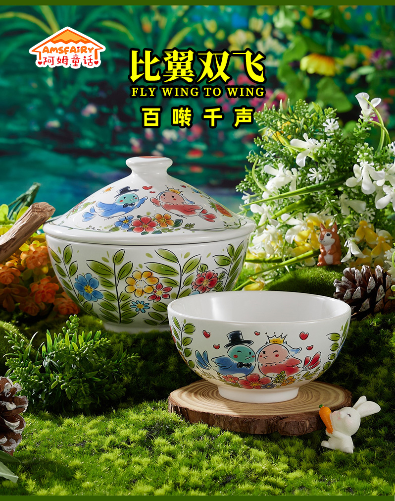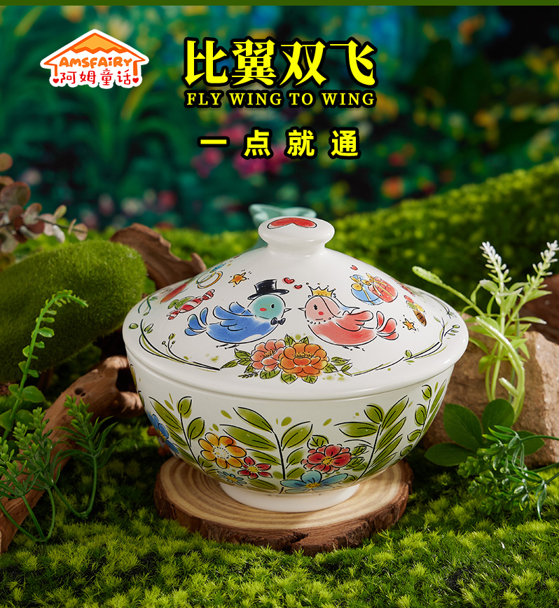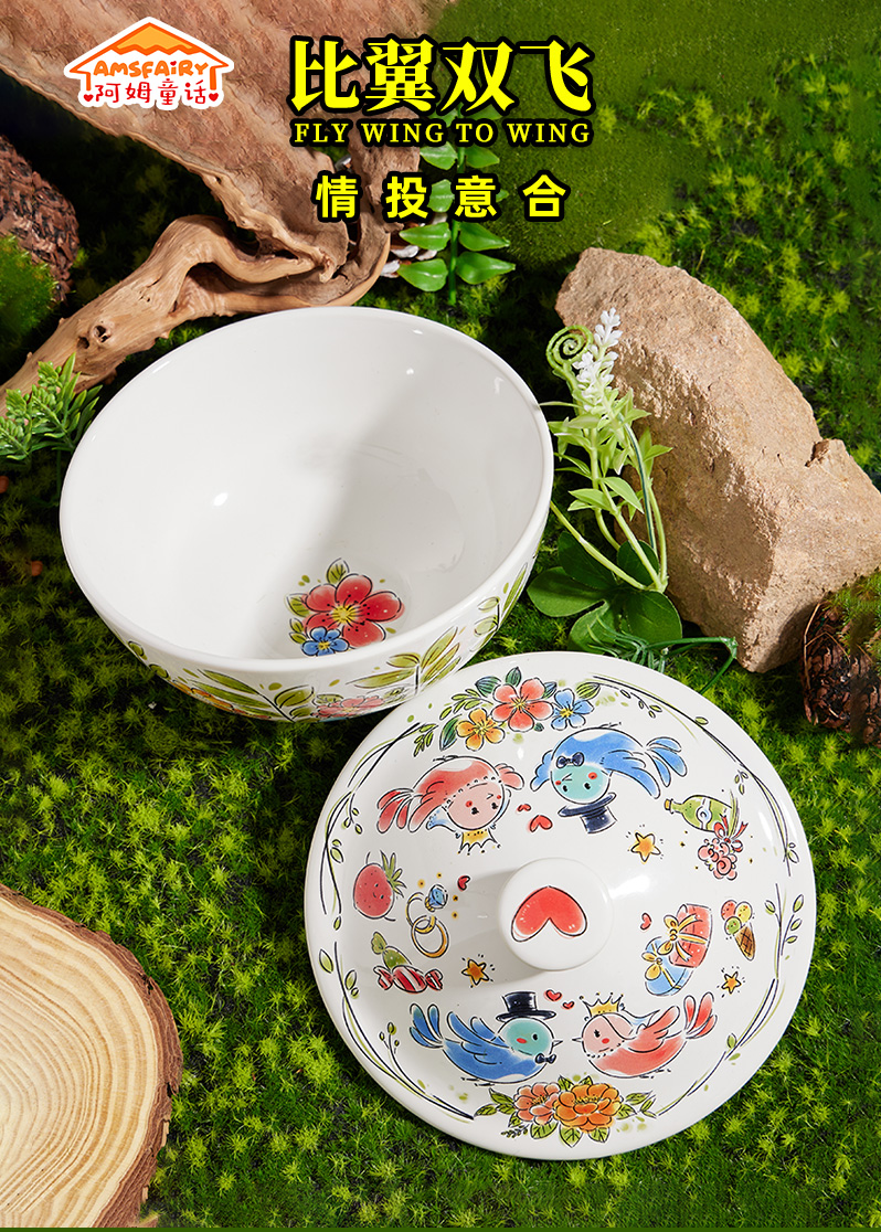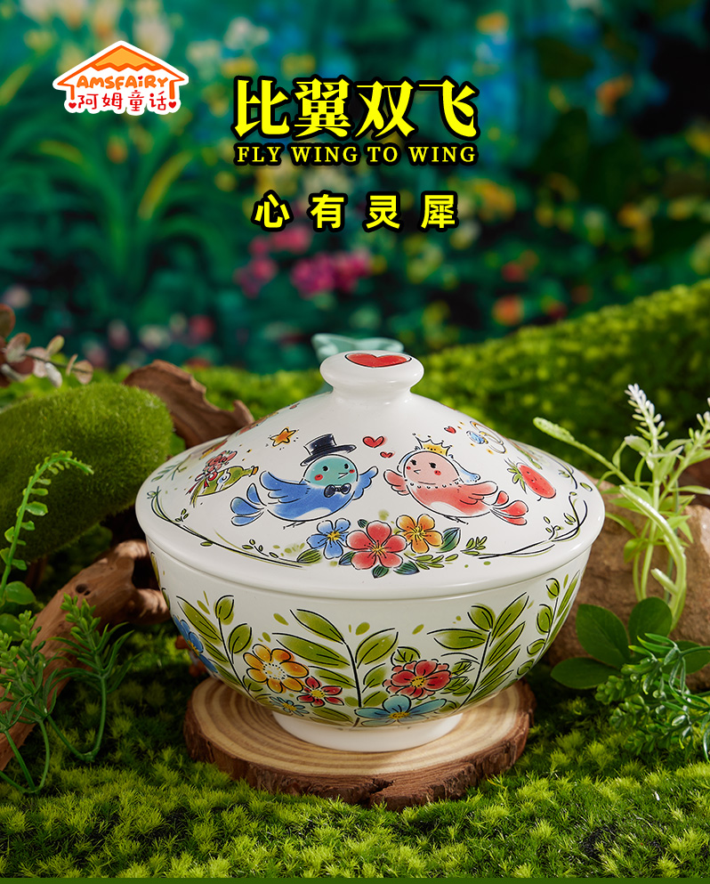 比翼双飞带盖汤碗