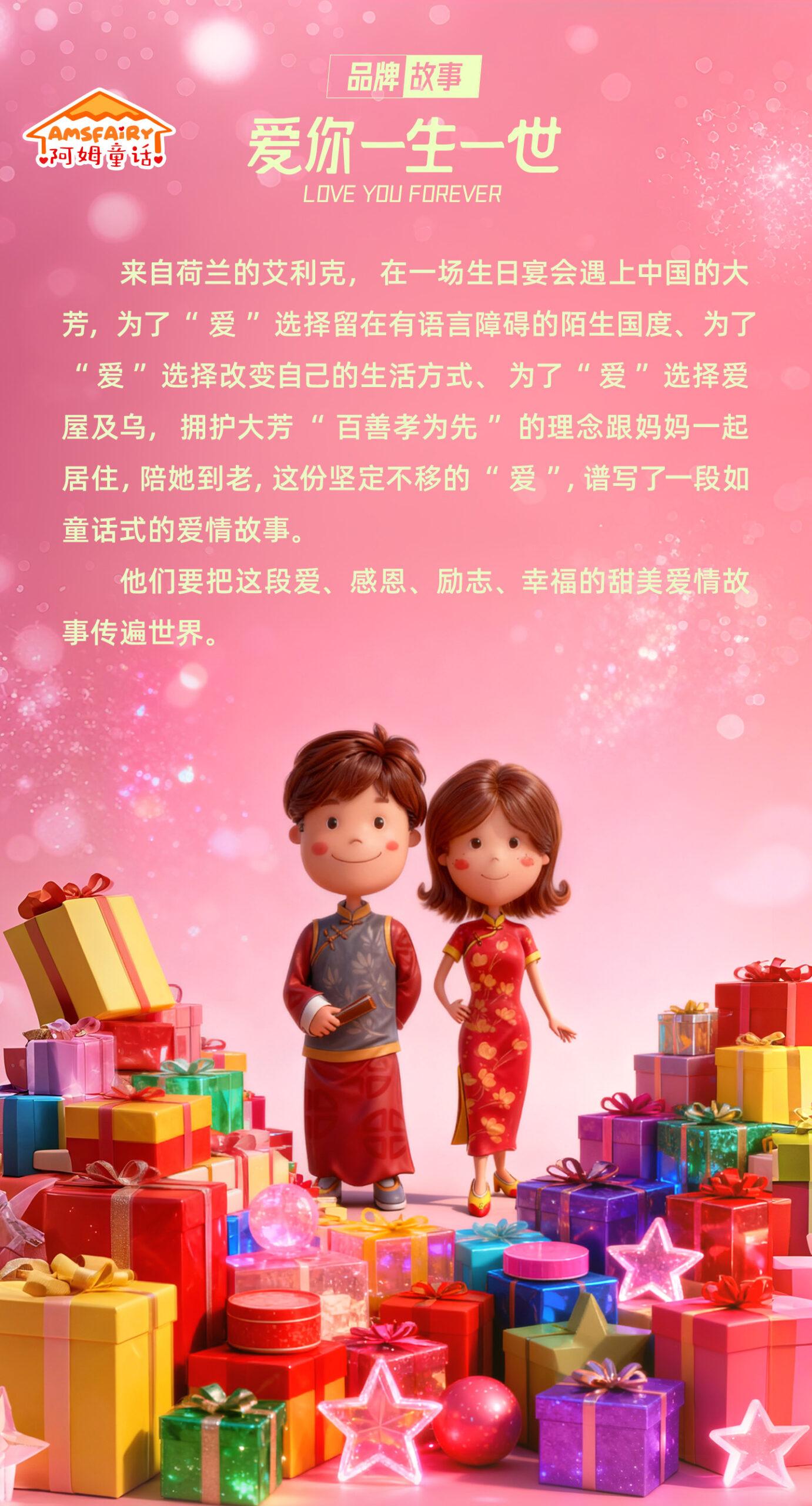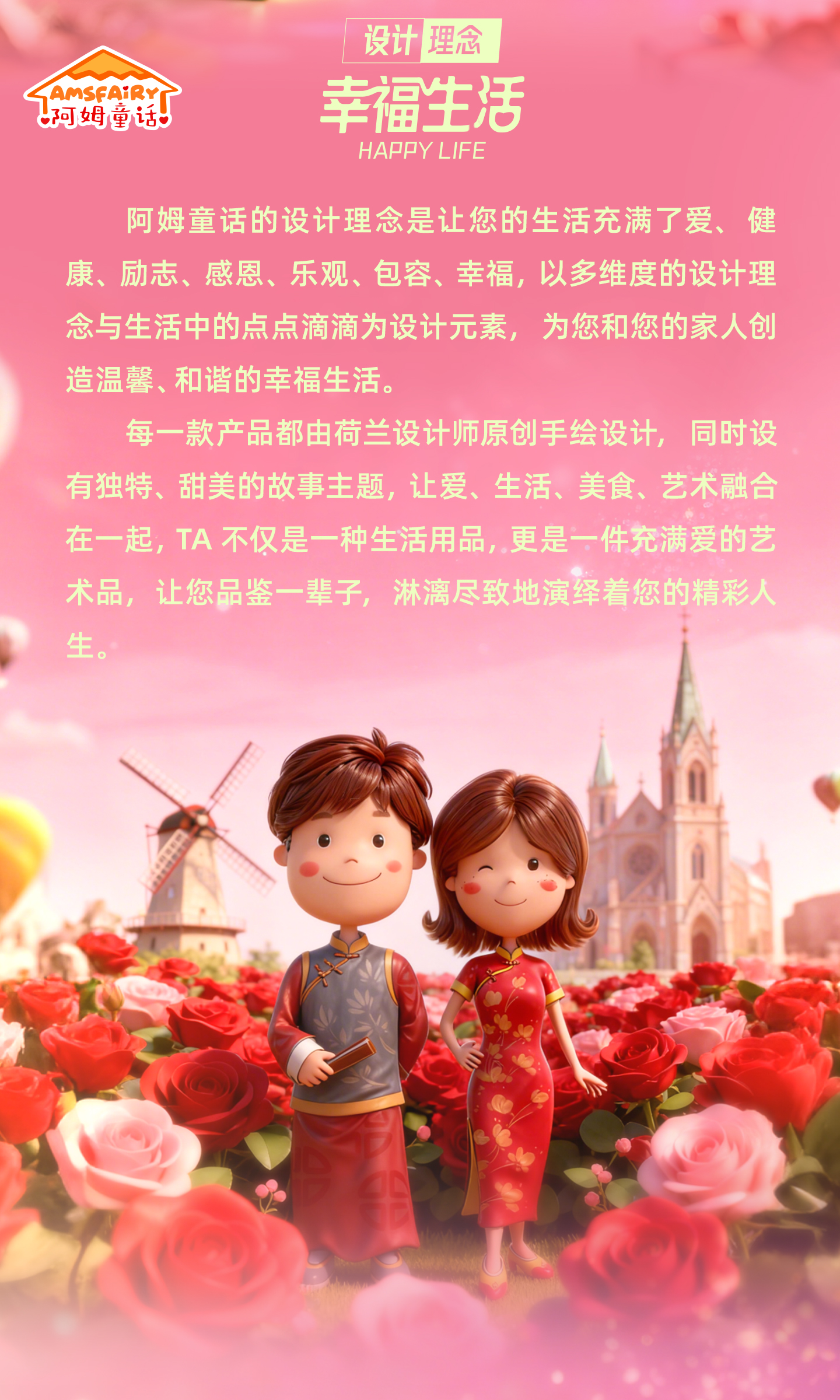 品牌介绍 阿姆童话是一个特色餐饮生态链品牌,以励志的内容传播、打造百年家文化传承给世人,产品载体以餐饮具、茶、咖啡、大健康轻食食品,营造一个用、吃、喝的幸福生活场景,与您的家人、闺蜜、朋友共度美好时刻。